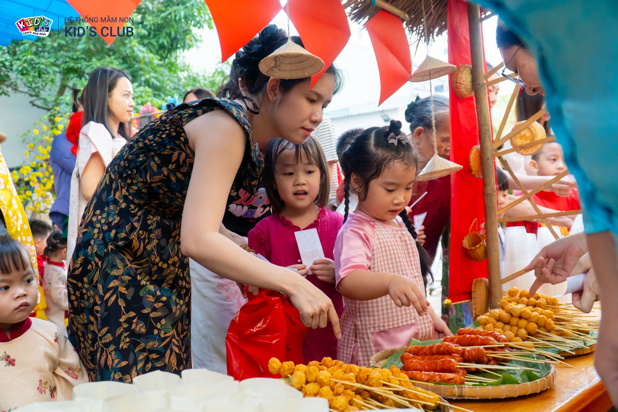 Tại Kid’s Club – một trường mầm non giáo dục trẻ về Tết cổ truyền theo phương pháp trải nghiệm – các bé được học mà chơi, chơi mà học về ngày Tết và 12 con giáp thông qua nhiều hoạt động thực hành thú vị. Nhà trường thường tổ chức các buổi học chủ đề Tết trước kỳ nghỉ, tái hiện không khí lễ hội truyền thống ngay trong lớp học. Ví dụ, cô giáo có thể kể cho trẻ nghe những câu chuyện dân gian ngày Tết như Sự tích bánh chưng bánh dày hay Sự tích 12 con giáp để các bé hiểu nguồn gốc phong tục ngày Tết.